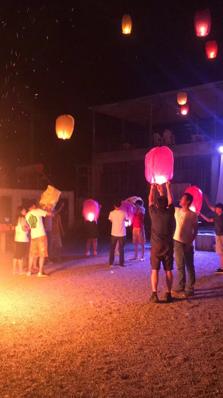 走過驚險刺激的玻璃棧道,回去吃個晚飯壓壓驚。 團建活動part 3:篝火晚會 篝火晚會可是本次團建中“小芯”最期待的環節呢!大家圍坐在農家小院,點燃篝火,伴著美妙的音樂,放飛寫滿自己心愿的孔明燈。
