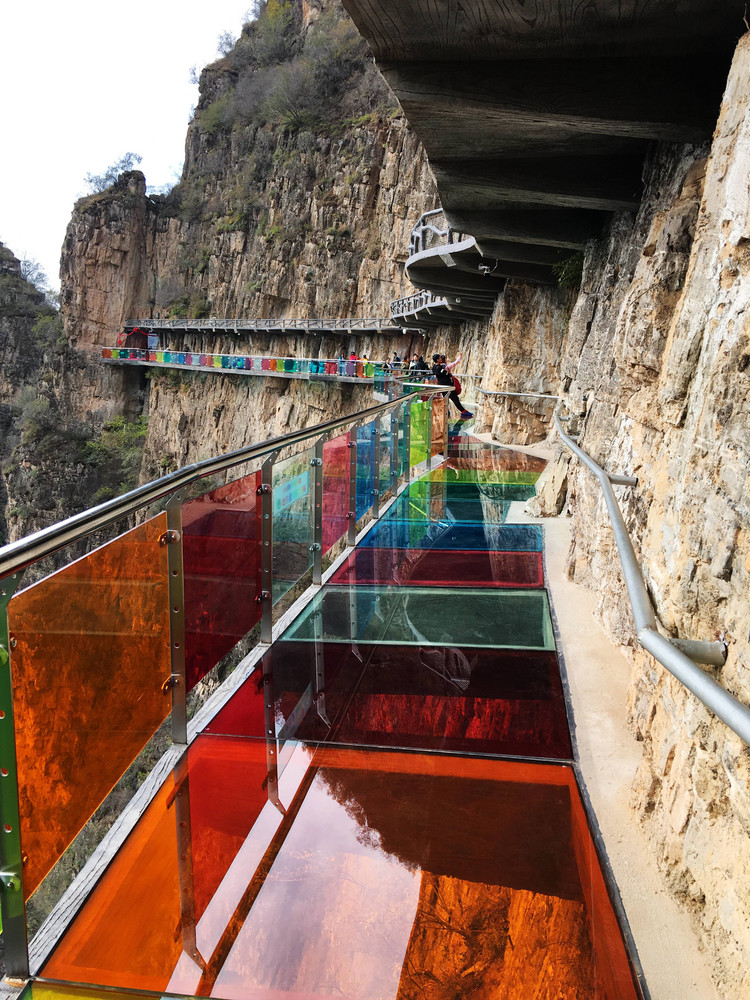 (豐盛的農家菜) 團建活動part 2:挑戰七彩玻璃棧道 吃過午飯,一行人乘車去往東湖港。東湖港的玻璃棧道是七彩的,這是國內首家“七彩玻璃棧道”,挑戰區全長1200米,其中七彩玻璃128米,高差600余米。走在玻璃棧道上,猶如踩著一條長長的彩虹橋,驚險刺激而又不失浪漫夢幻!