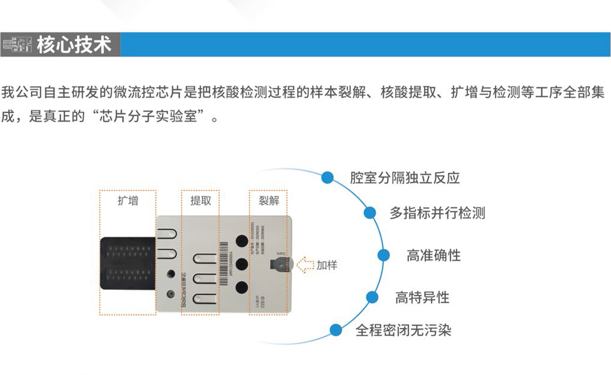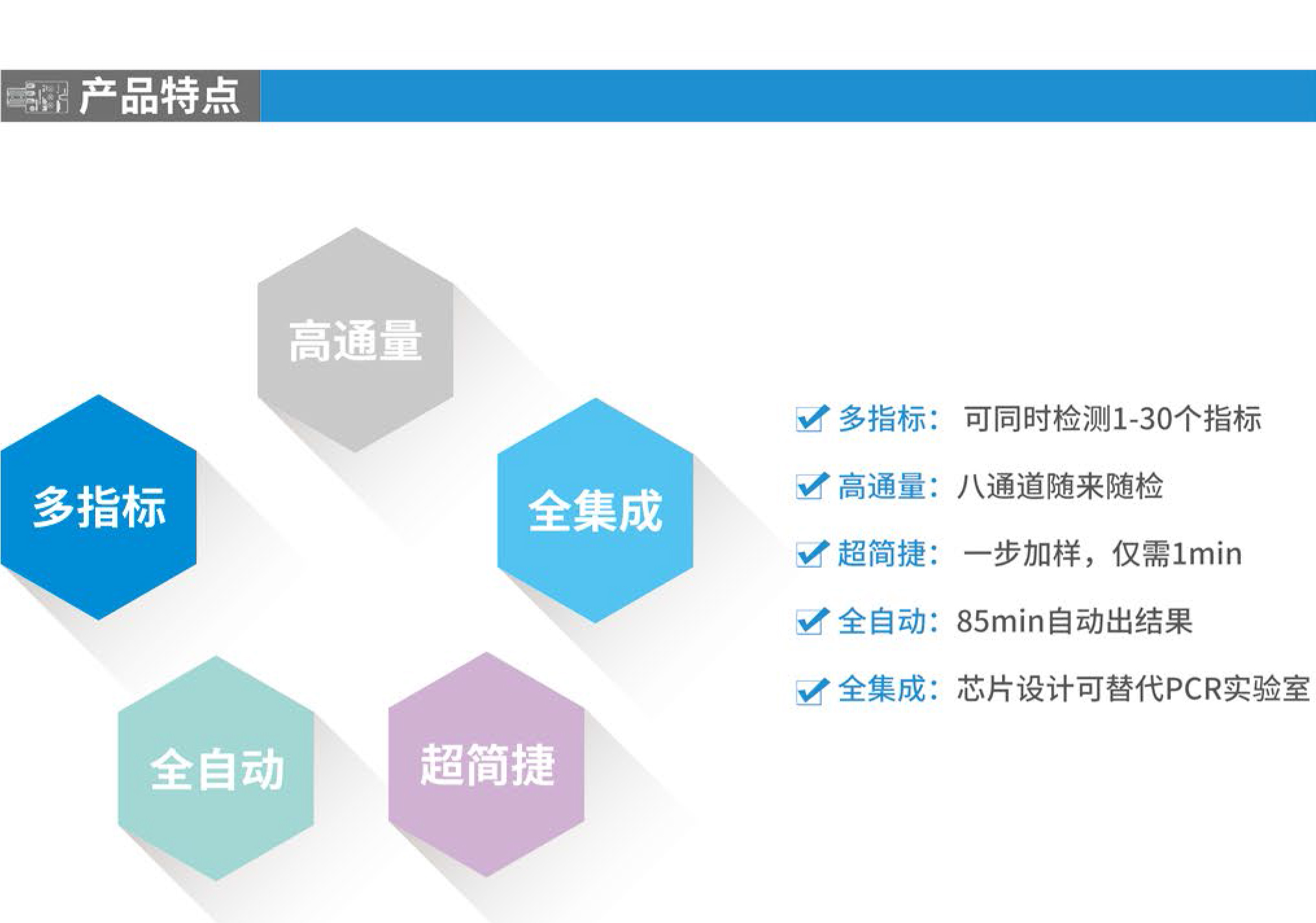 Onestart-1000全集成微流控芯片核酸檢測系統將復雜樣品破碎技術、磁珠核酸提取技術、微流控芯片PCR技術三大技術全集成在一起,可以一次對1-60種常見致病菌及其耐藥分型進行快速檢測(1.5小時內),解決了傳統病原體培養法手工操作繁瑣、周期長、檢出率低等問題,對傳染病檢測、食品安全監控、反恐監測有著重要意義。系統可鏈接物聯網,自動上傳檢測數據,實現樣本的在線監測、分析、預警和溯源。